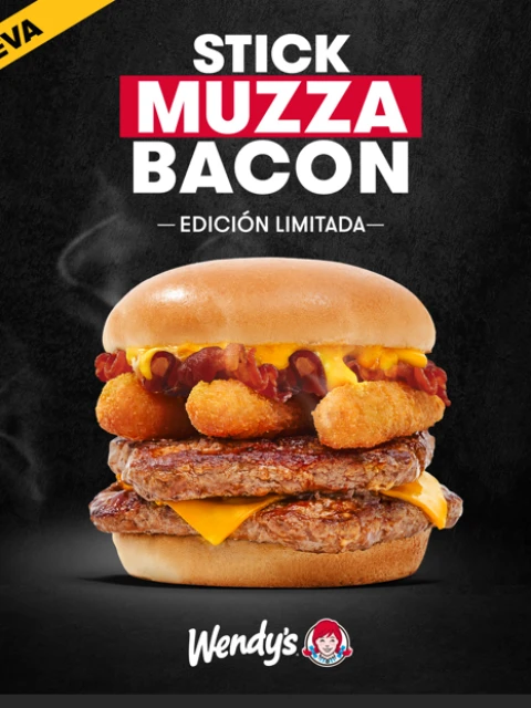 Una hamburguesa potente, con mucho queso y bacon, para cerrar el año con el sabor inconfundible de Wendy's.Stick Muzza Bacon.