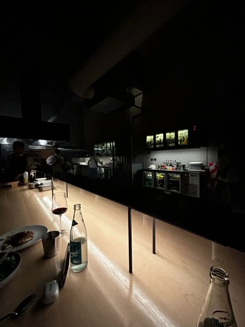 Los fuegos están ahí, como una verdad primitiva, pero se ven de costado o no se ven. El diseño -uno de esos con muchos likes- decidió que el fuego no merecía protagonismo. Grave error: esa llama es el corazón conceptual de la propuesta, el eje junto al producto y al sabor. El fuego, aquí, no cocina: arde en silencio.
