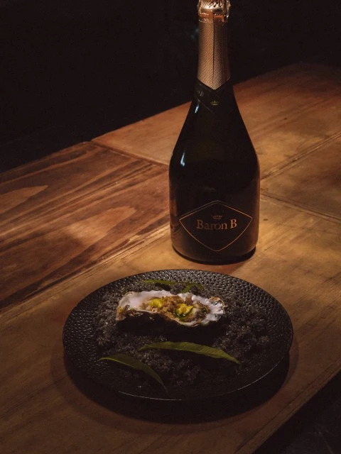 Para concursar en 2023, presentaron trucha curada, velouté de trucha ahumada, huevas y pera y propusieron maridarlo con Baron B Extra Brut.
